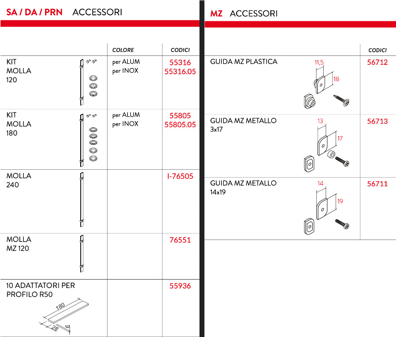 Kit molla perno Justor - codice 55316 per alluminio oppure 55316.05 per inox