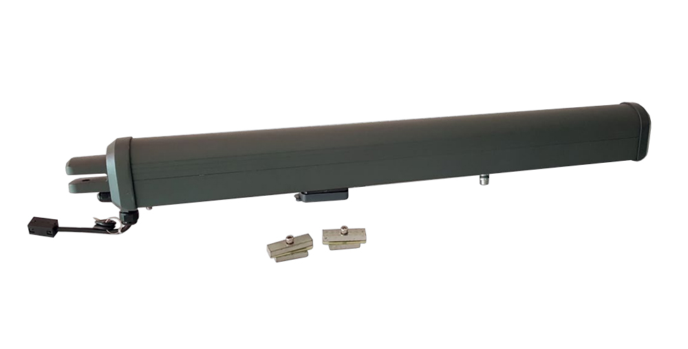 Adjustable and pre-drilled rear bracket . The arms are equipped with mechanical limit switches that allow you to adjust the desired stroke. For leaves longer than 1.8 meters, the use of an electric lock is recommended.
