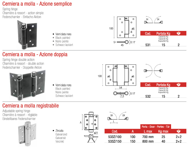 Available in single action, double action and adjustable versions , these spring hinges are ideal for both residential and commercial environments where efficient and controlled opening and closing is required.