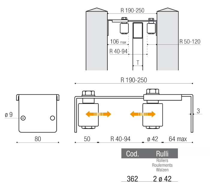 Piastra di Guida Regolabile per Doppia Colonna Cancello Scorrevole