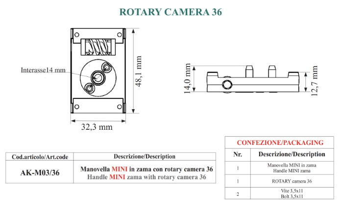 • AK-M03 / 36 : MINI ZAMAK crank with rotary camera 36.
