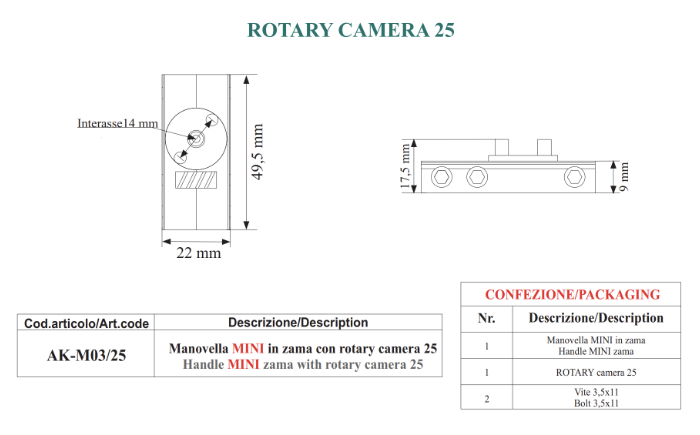 • AK-M03 / 25 : MINI ZAMAK crank with rotary camera 25;