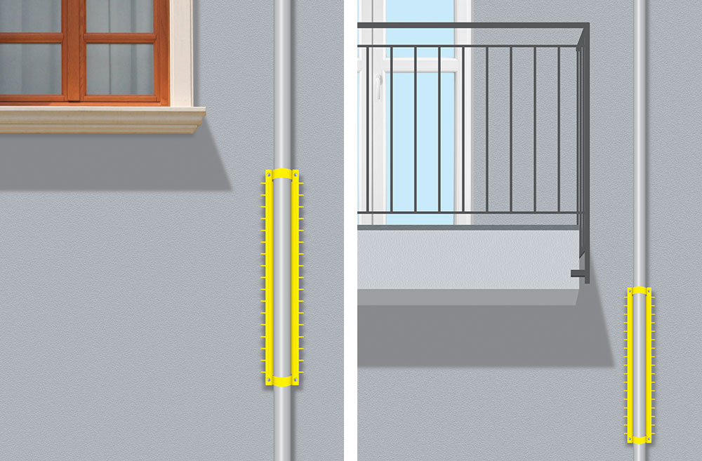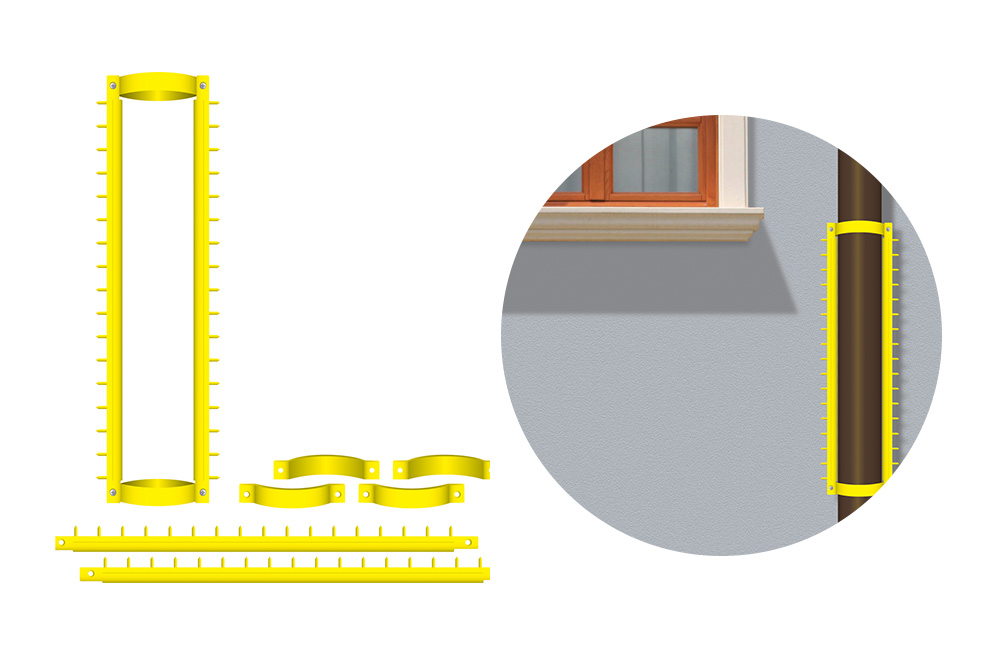 Grimpo K anti-theft system with steel tips for gutters and downpipes