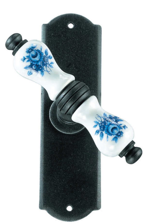 Athens Galbusera Window Handle with Plate Porcelain and Wrought Iron