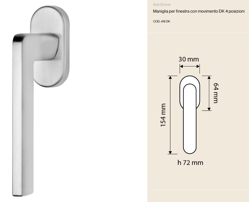 Axis Zincral Linea Calì Window Handle with DK Movement