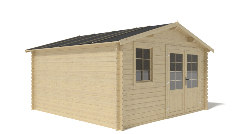 Blockhouse in Fir 400x400 cm - with Double Door and Window - Model Lisa Losa