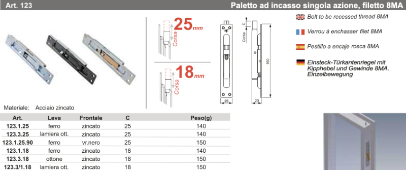 Paletto ad Incasso Singola Azione Filetto 8MA Nova-Ferr 123