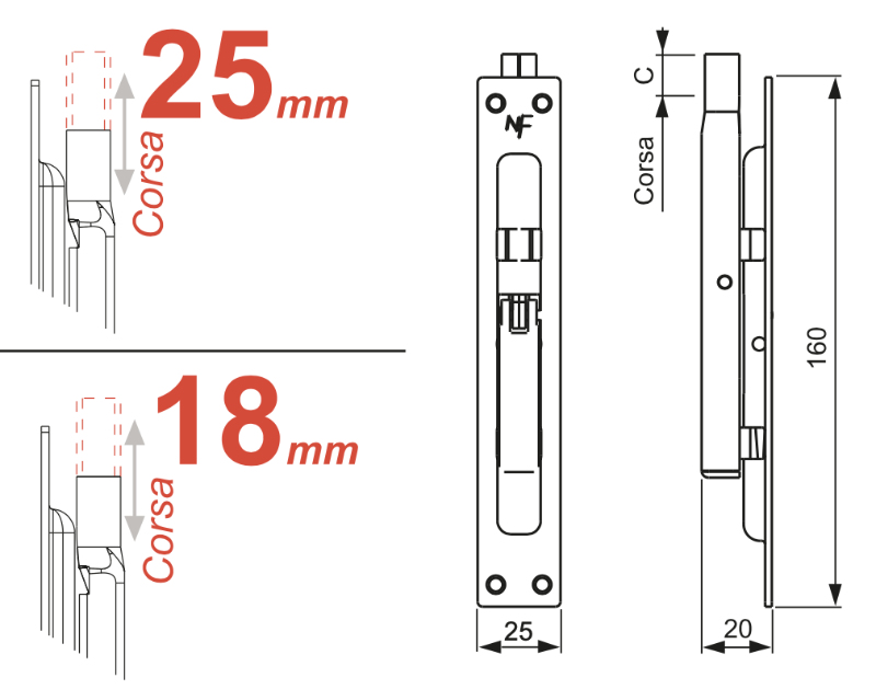 Select the variant you want for the Nova Ferr recessed bolt: lever, front and stroke of your choice.
