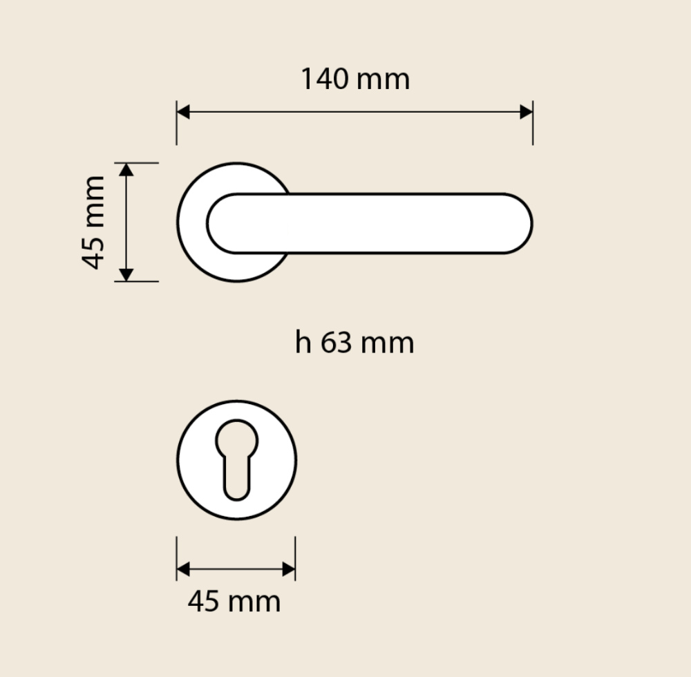 • Version: with round rosette Ø 45 mm and escutcheon with key hole of your choice (Patent, Yale, WC or without escutcheon).