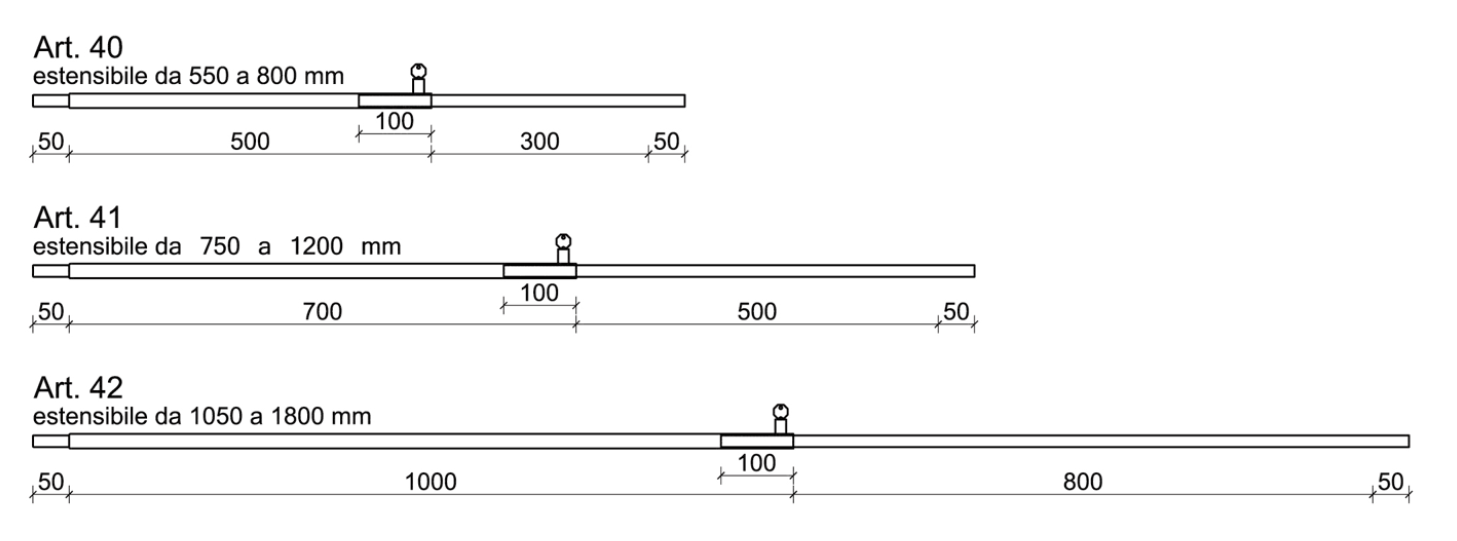 pass-through metal brackets (2 for the 550 to 800 mm version, 4 for the 750 to 1200 mm and 1050 to 1800 mm versions).