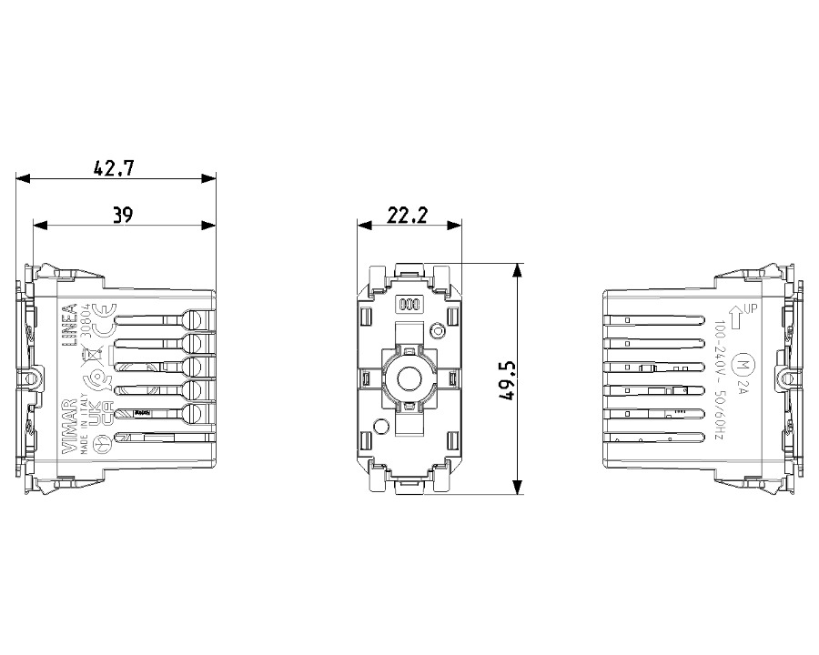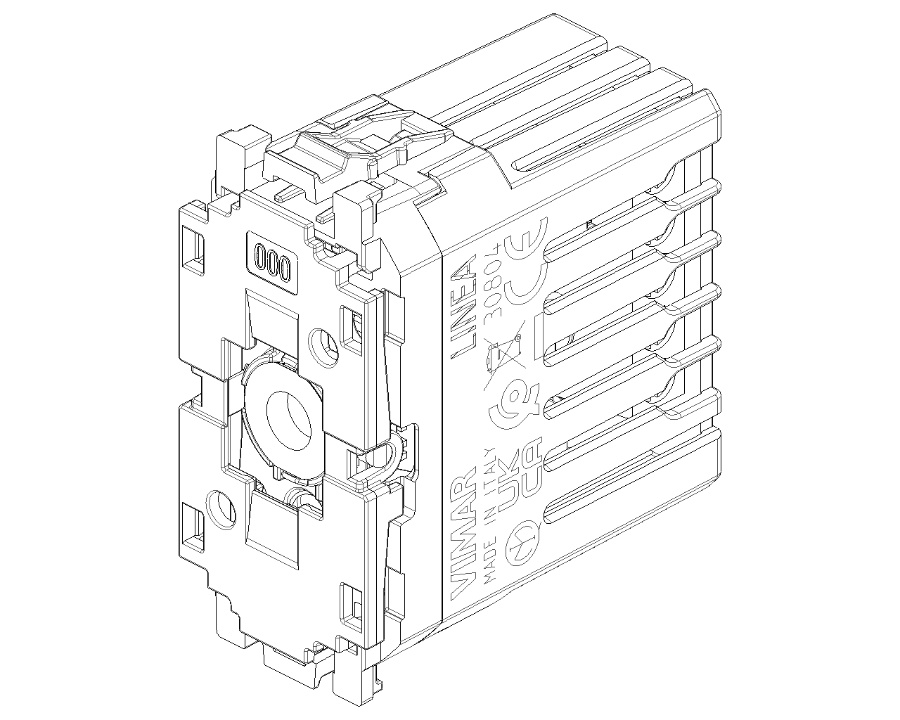 Standard power supply 100–240 V / 50–60 Hz. To be completed with 1-module button from the Linea Series (not included).