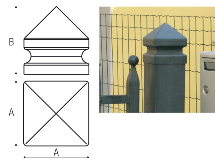• shaped post cover for galvanized gate.