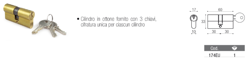 174EU Brevetti Adem lock cylinder is a high quality security component and is made of robust brass and supplied with a set of three keys.