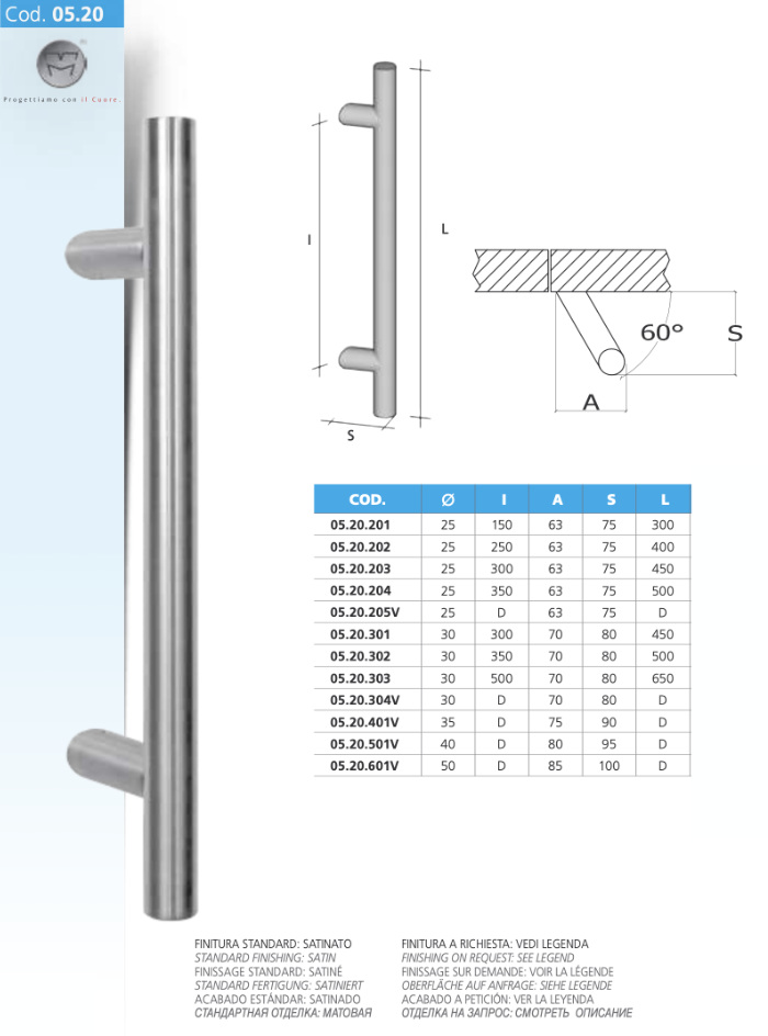 Door pull handle in satin, polished or painted AISI 316L or AISI 304 quality stainless steel (select the variant), brand MPM code 05.19.