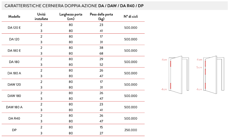 Justor DA 120 double action hinge designed for traditional fixing with screws and for assembly by welding in the frame and door.