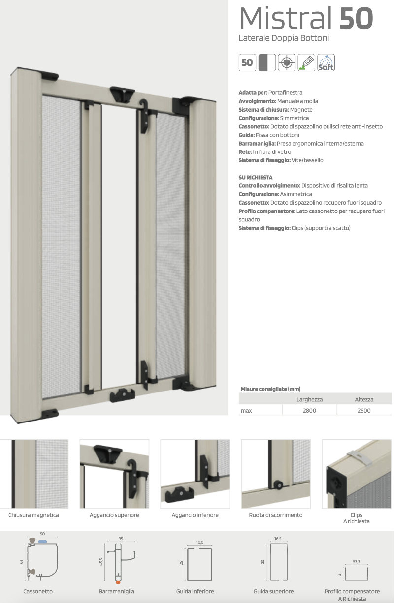 Mosquito net features - Mistral 50 Lateral Double Door