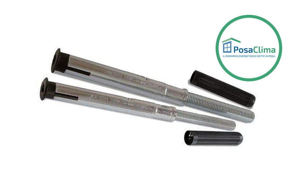 Thermoflix PosaClima is the special bolt for fixing the hinges of the punctual shutter specifically designed for the installation of the hinges on coats up to 14 cm thick (16 cm on compact masonry).