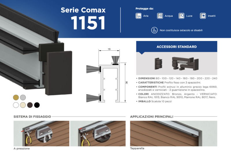 Draft Excluder for Rolling Shutters Comaglio 1151 Comax Sizes and Colors