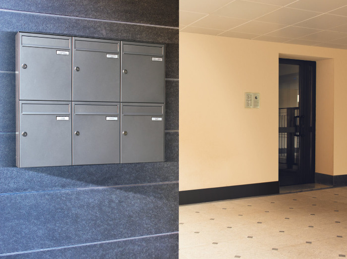 Mailboxes compliant with European standard EN13724 in thin steel designed for installation in confined spaces.