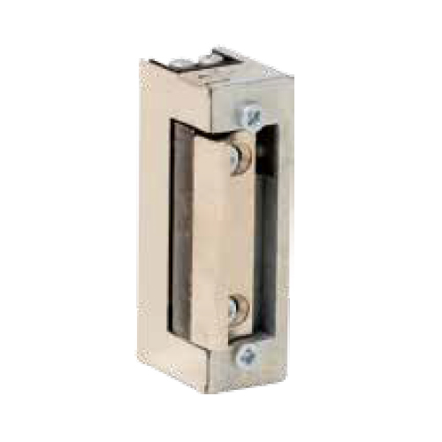 Electric strike for aluminium or wood doors with latch or deadbolt locks.