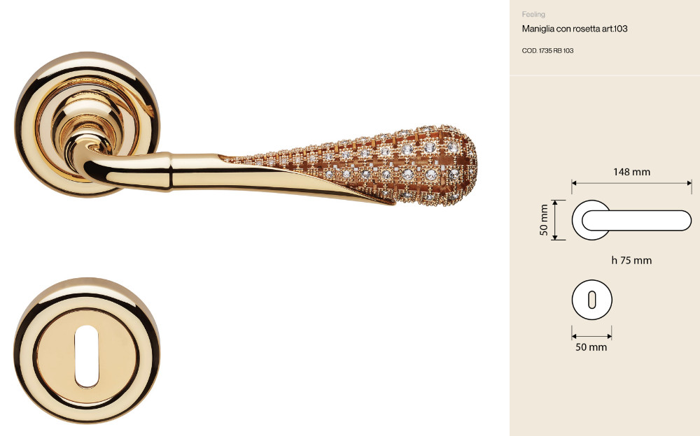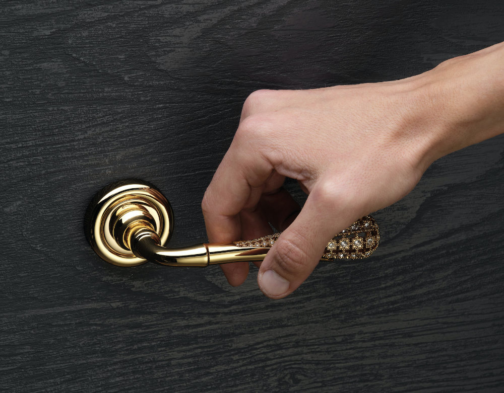 Feeling Linea Calì – Brass door handle with hand-set Swarovski® crystals, a symbol of elegance and light Made in Italy.