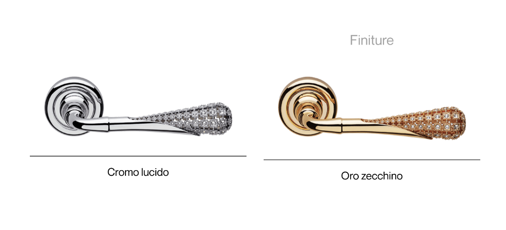 Each Feeling Linea Calì handle is born from the encounter between elegant design and precision craftsmanship, with a handle embellished with original Swarovski® crystals, individually hand-set. The result is an object that captures the light, transforming the act of opening a door into a refined and spectacular experience.