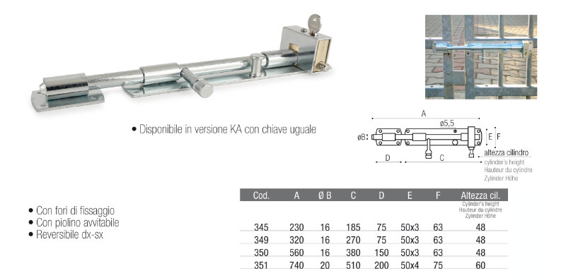 Deadbolts for gates and closures - Made in Italy