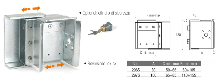 adjustable both as regards the width of the tubular and as regards the space between the column and the gate leaf. The depth of the match varies depending on the selected code.