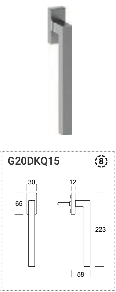 Buy online the window handle with extended handle in stainless steel model Genève 200 Reguitti DK with 8 clicks.