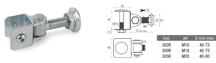 Cardine per Cancello - Superiore e Autofissante - Boccola Regolabile