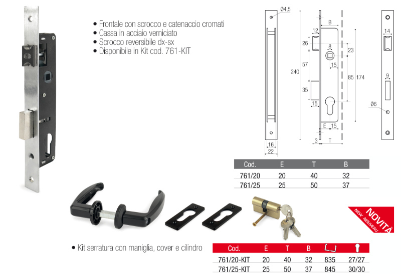 The mortise lock is sold alone or in kit with handle, cover and cylinder.