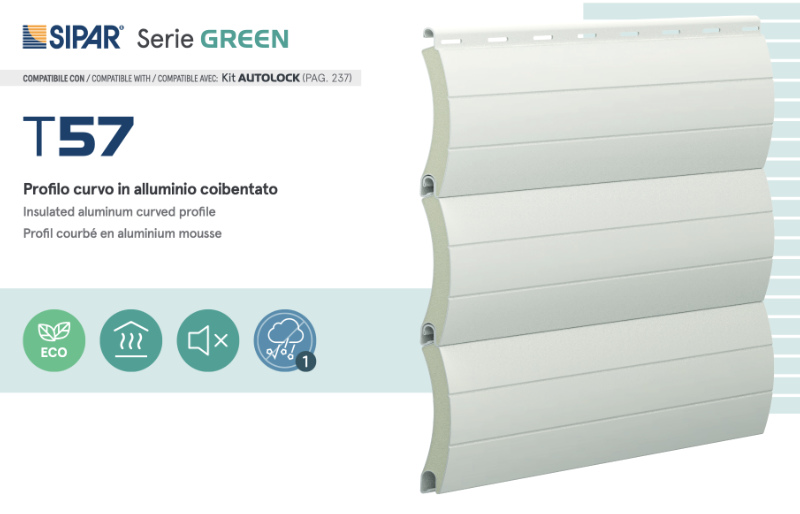 The Sipar T57 insulated aluminum roller shutter stands out for its curved profile and the fine aluminum insulation, an integral part of Sipar's GREEN Series, which guarantees superior quality thermal and acoustic insulation.