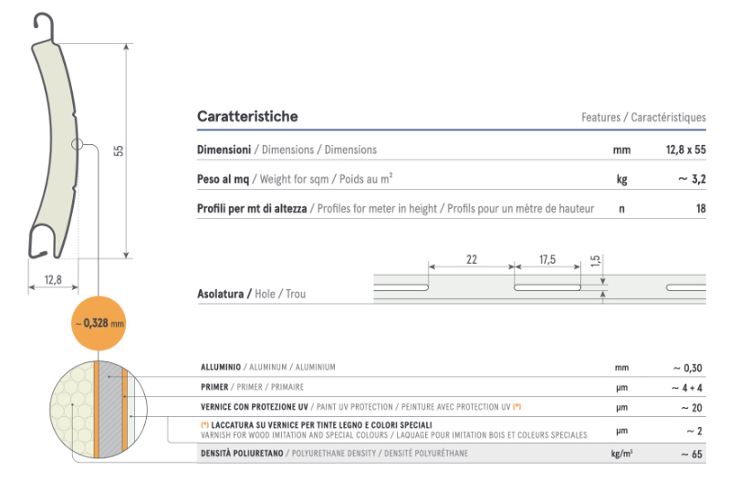 Insulated Aluminum Roller Shutter - Sipar T57 - Curved Profile - 12.8 x 55 mm