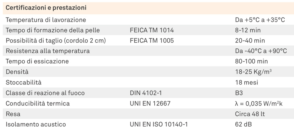 Can be used from + 5 ° to + 35 ° C, as long as the cylinder temperature is greater than 10 ° C. It is resistant to rain and high temperatures, but must not be exposed to ultraviolet rays. Screw the can on the gun and shake it vigorously before use at least 20 times. Moisten the substrate with nebulized water and fill the joint to 50%. After frothing, spray some more water. The foam will expand to completely fill the joint. Grouts wider and / or deeper than 4 cm should be filled in several layers (waiting 15-30 min between each step), by nebulizing water between each layer and after each application. Use Profi Schaum Eco 48 only in well-ventilated rooms. Protect the cylinder from sunlight and do not expose to temperatures exceeding 50 ° C. It is possible to interrupt the application of the foam at any time by leaving the cylinder inserted on the gun.