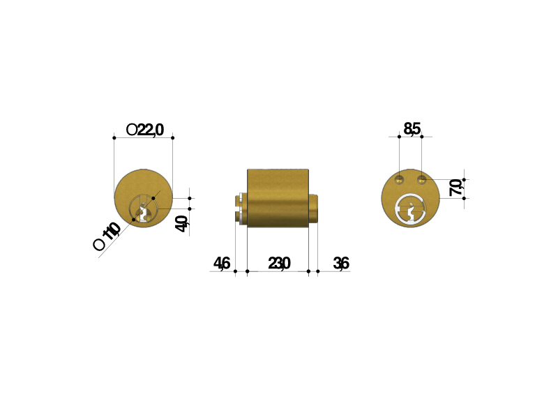 • Finishes: brass cylinder, galvanized lock;