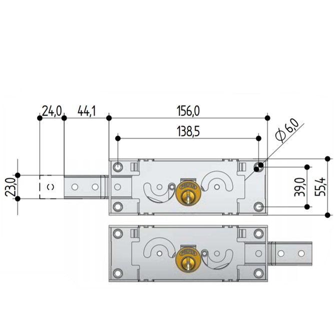 • Galvanized steel box 156 x 55.4 mm;