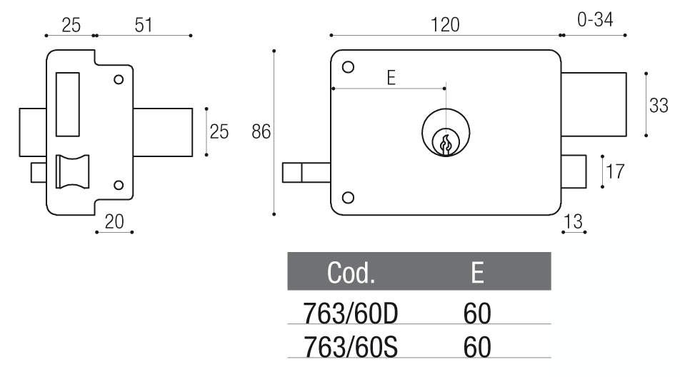 • Right version cod. 763 / 60D or left 763 / 60S;