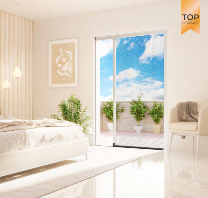Mega protection, mega resistance and mega comfort. The Mega Effezeta System mosquito net is a lateral sliding mosquito net with retractable track guide and windproof system .
