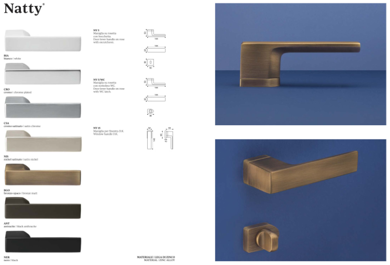 formal continuity and the soft connections, Natty offers a high comfort of use. Its exclusive shape gives the handle a sophisticated and refined look, combining design and functionality.