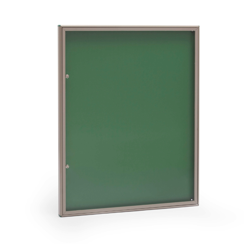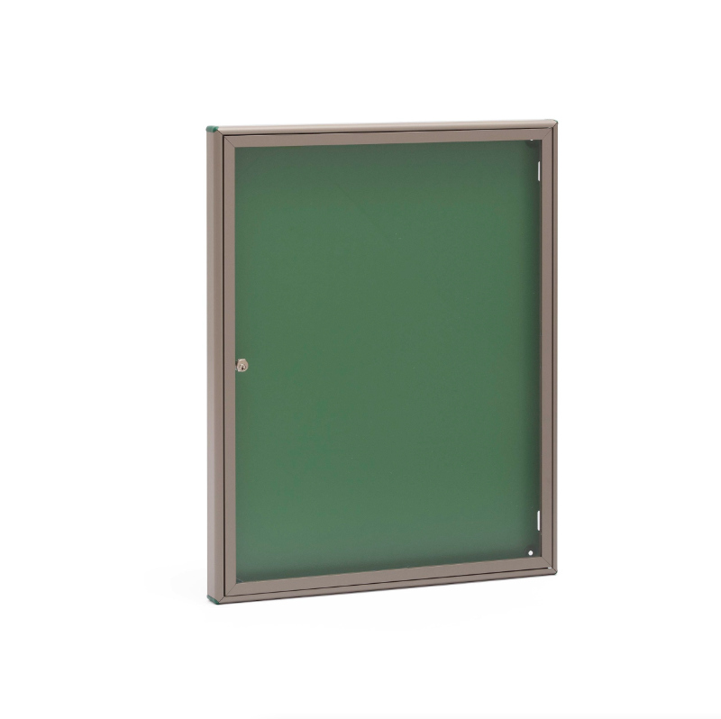 Notice board in aluminum profile (depth 40 mm) with rounded edges and 3 mm plexiglass swing door.