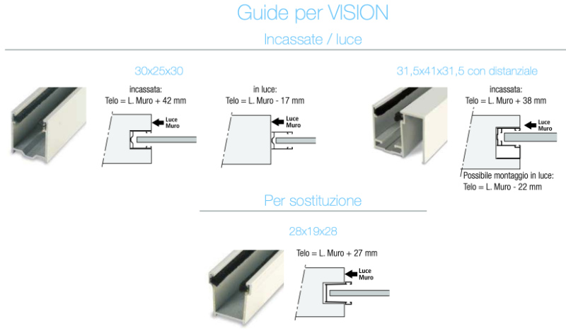 VISION window blinds are supplied with an extruded aluminum terminal with a retractable support element and are compatible with extruded aluminum guides equipped with brushes.