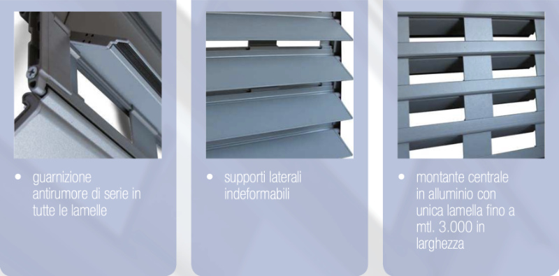 • Roller shutters in extruded aluminum equipped with adjustable slats painted with epoxy powders;