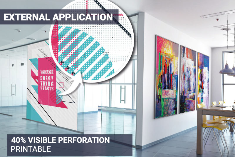 Reflectiv PERF 40 printable adhesive film , with 40% microperforation , is perfect for applications on windows and vehicles.