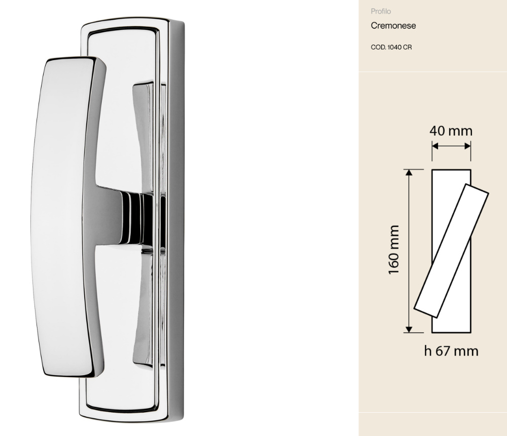 Since 1986, Linea Calì has been creating Cremonese handles that combine design and functionality, transforming a simple gesture into an experience of everyday elegance. Cremonese handles are window handles with a vertical lever movement , used to lock and unlock the sash with a practical and reliable system.