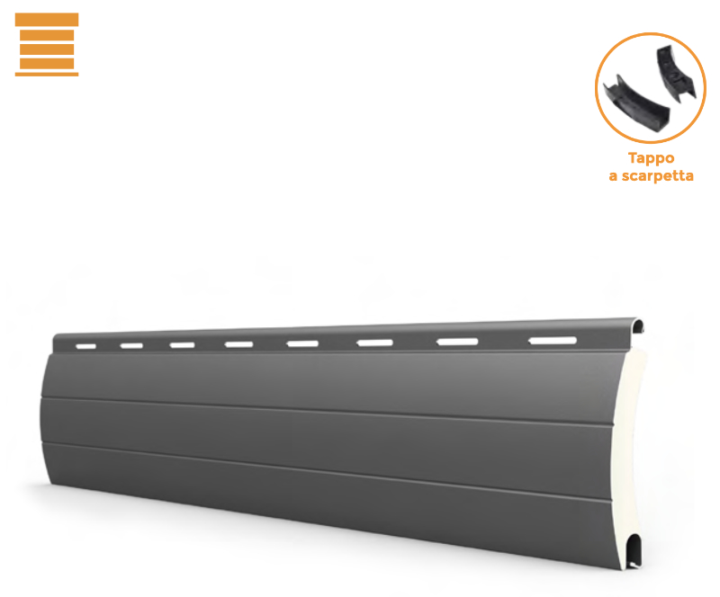 Effezeta Aluminum 12 is a medium density insulated aluminum roller shutter, canvas only, with shoe cap and aluminum terminal included.