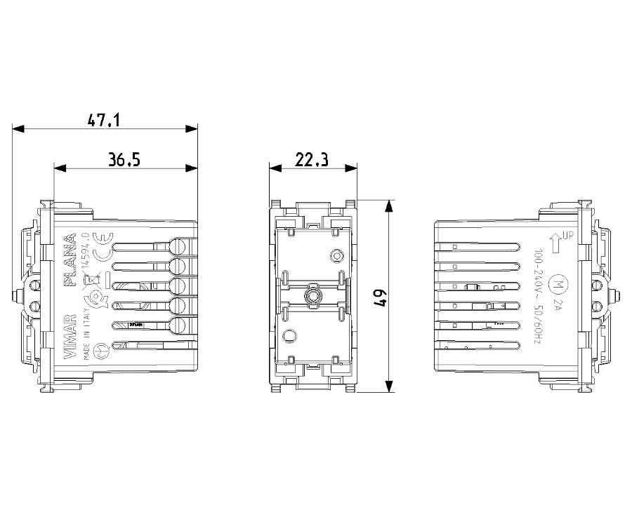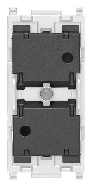 Plana Vimar shutter mechanism equipped with double IoT technology on Bluetooth 5.0 standard for creating VIEW Wireless mesh system and on Zigbee 3.0 standard, 1 input for external button for recalling a scenario, preferred position recall function, RGB LED detection in the dark with adjustment of intensity, power supply 100-240 V 50/60 Hz, to be completed with two interchangeable half-buttons 1 Plana module.