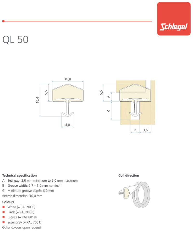 Schlegel QL 50 is a high quality seal designed to provide an excellent seal on internal doors and wooden furniture.