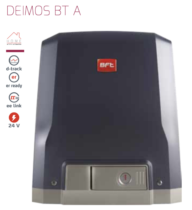 - 1 DEIMOS BT A600 : 24 V operator for sliding gates up to 600 kg in weight. Leaf speed 12 m / min;