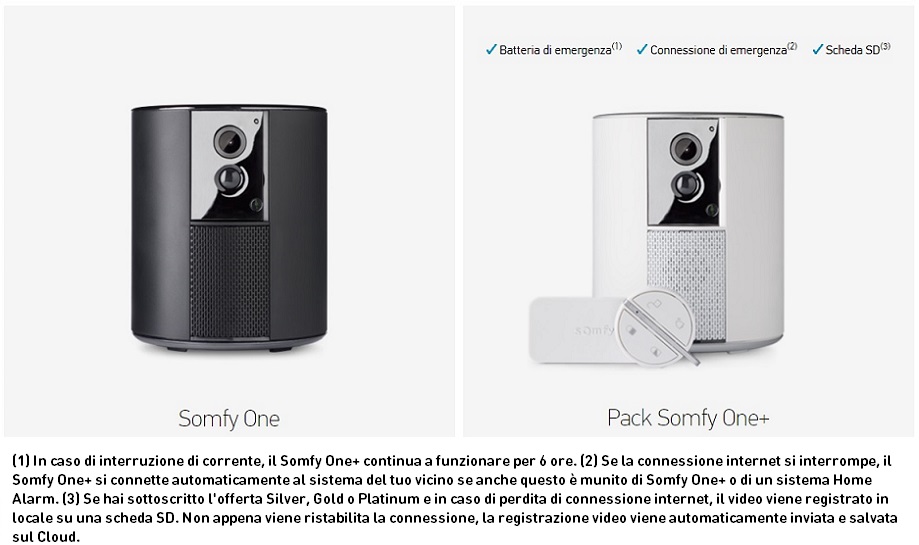 - Somfy One+ is compatible with the whole range of Somfy Protect accessories: IntelliTAG ™, internal motion detector, external siren, internal siren, badge and Security Camera.