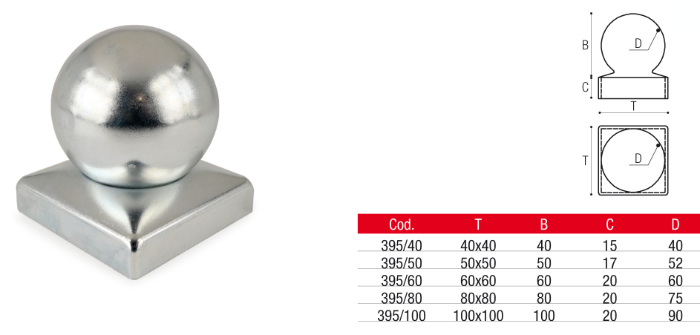 The Adem spherical column cover is a column cover to be positioned on the support and stop tube of square-based gates.